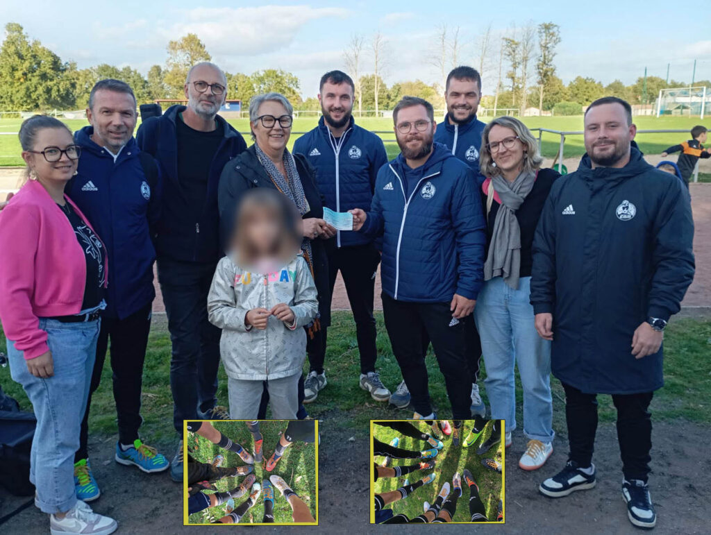 Le Football Club Essarts Boulogne Merlatière a remis un chèque de 500€ pour l’achat de 100 paires de liens couleur OR à l’association Ô Ma Vie, témoignant ainsi de son engagement envers les enfants malades. À cette occasion, les joueurs ont fièrement arboré des lacets dorés en soutien aux enfants malades pour Septembre en OR dédié à la sensibilisation du cancer pédiatrique. L’association Ô Ma Vie tient à remercier chaleureusement tous les membres du club pour leur générosité et leur solidarité qui font une réelle différence dans la vie de ces enfants et de leurs familles.